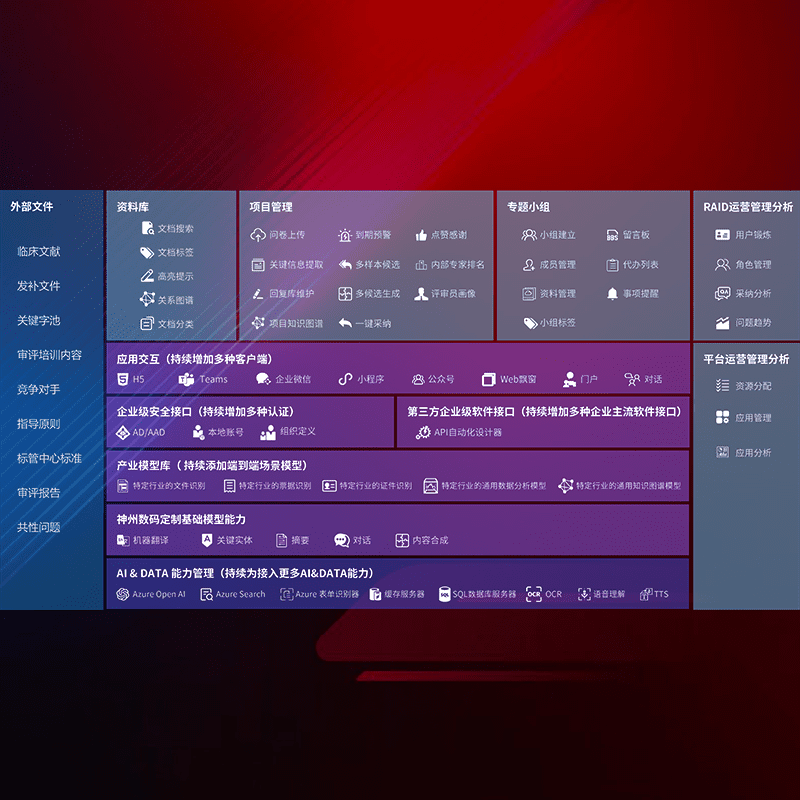 医疗器械产品上市前,,,,要熟悉严格与繁复评审标准,,,,整理分析监管机构指导文件中的海量信息。。企业急需一个智能化解决方案,,,提升知识管理效率,,,,提高评审通过率,,,以提升其市场竞争力。。
